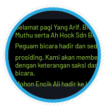 - Automatically generate draft text locally of court proceedings for Malaysia Languages : Bahasa Melayu, Malaysian English, Mandarin, Tamil.